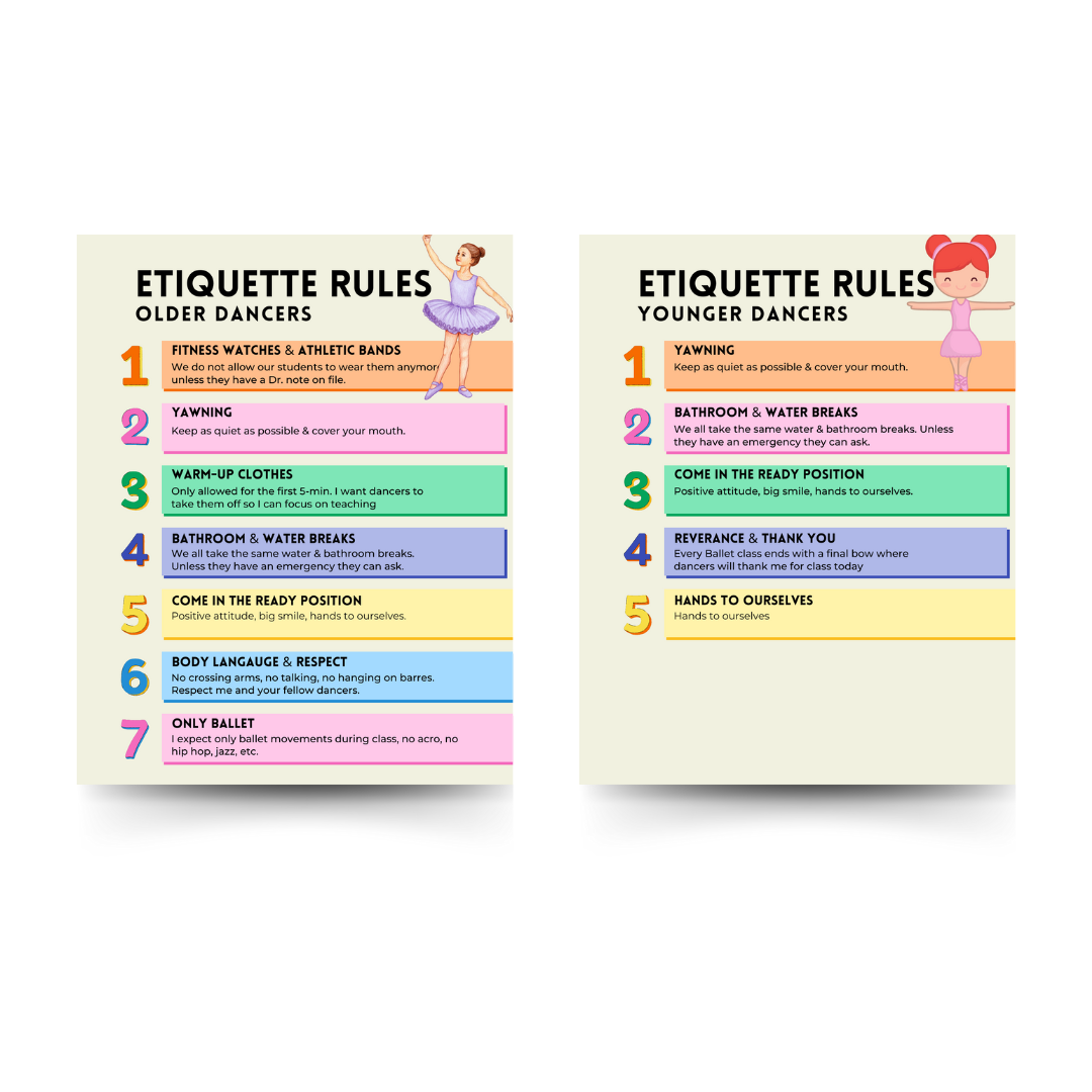 - 🩰 Teach your dancers the art of class etiquette.