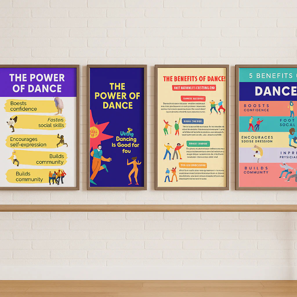 🤩Designed for studio walls, The 5 Power of Dance Posters highlight how dance shapes confident, happy, and healthy kids.